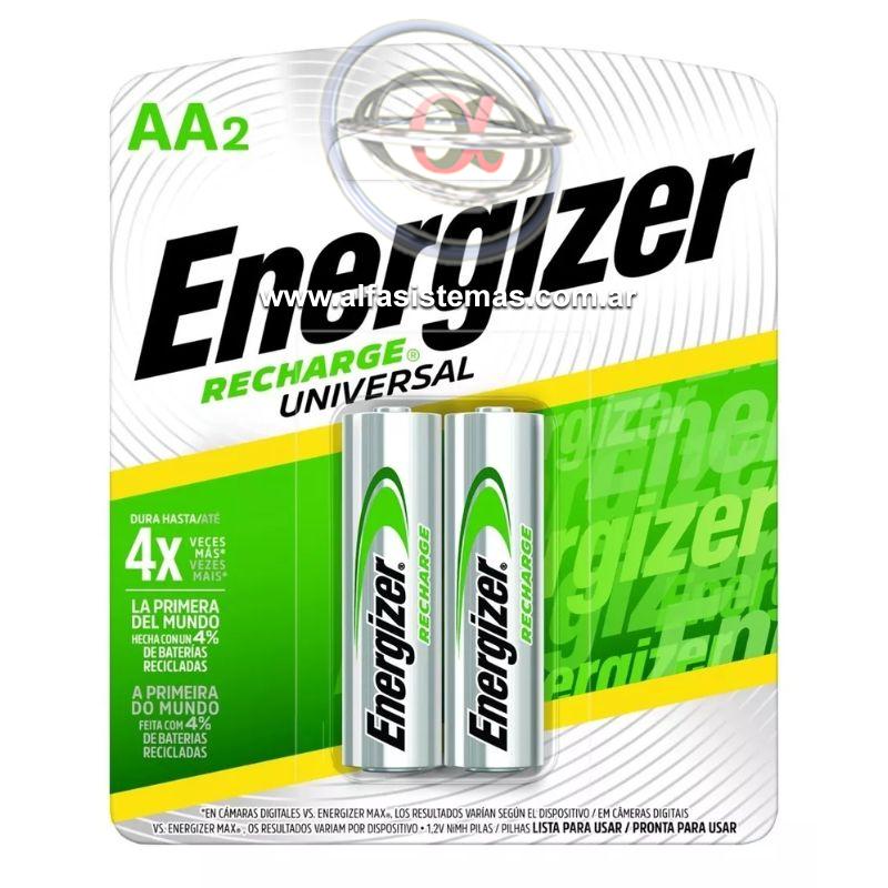 | Pilas Recargables AA Energizer 2000 mAh 1.2V x 2 Unidades Caracteristicas: - Marca: Energizer - Modelo: Recargable - Tamaño de la pila: AA - Unidades por pack: 2 - Voltaje nominal: 1.2V - Capacidad de la pila: 2000 mAh |